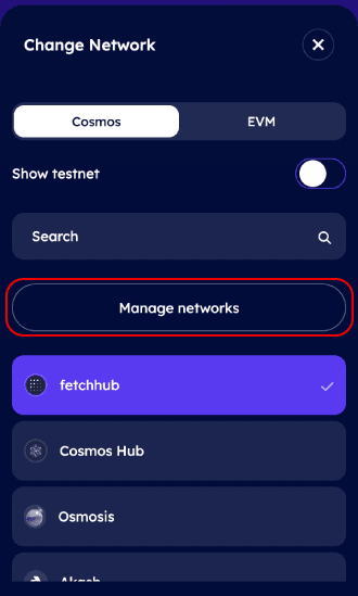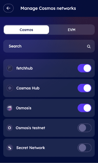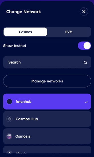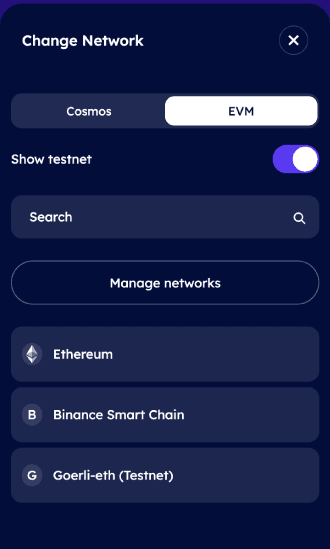 They also have 2 tabs Cosmos and EVM to select from.