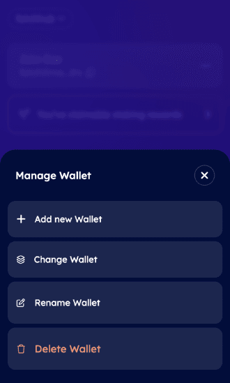 By clicking on these 3 dots button, user will see the following options to manage their wallet: