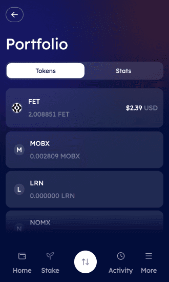Here user will have 2 tabs: Tokens and Stats.