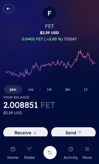 - Users will be able to see price graph at different timelines but also perform Receive or Send operations by clicking on token boxes.