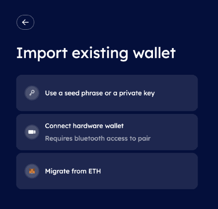 Step 2 : Select Import Existing Wallet