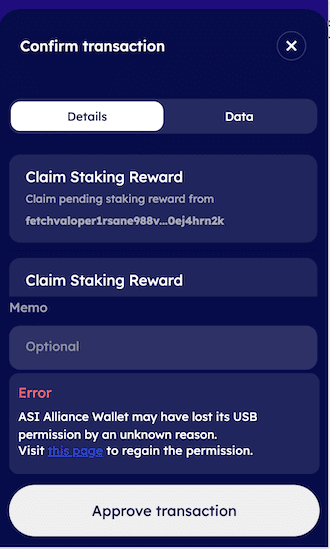 If the connection is secure, attempt to click the Approve Transaction button twice.