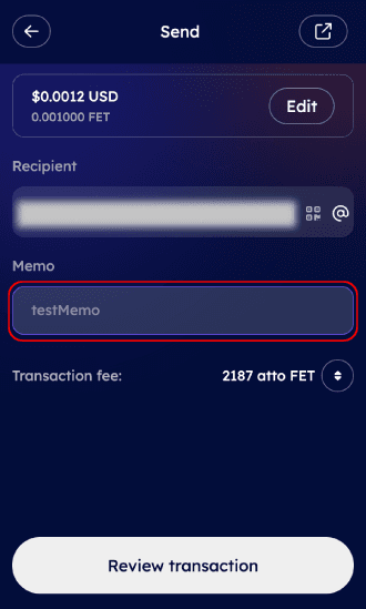 If the user wishes to add a Memo to the transaction, they can do so at this stage.