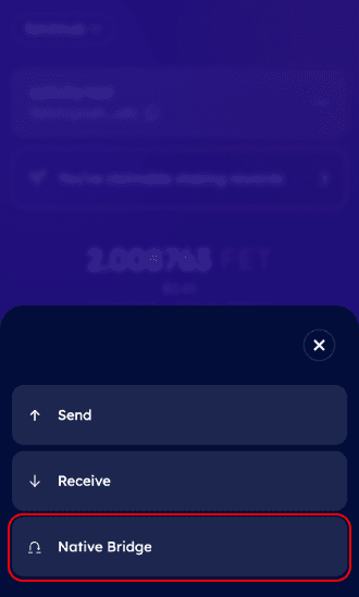 If users want to Native Bridge tokens from another blockchain, then they will need to choose this option as shown below and follow the needed steps.